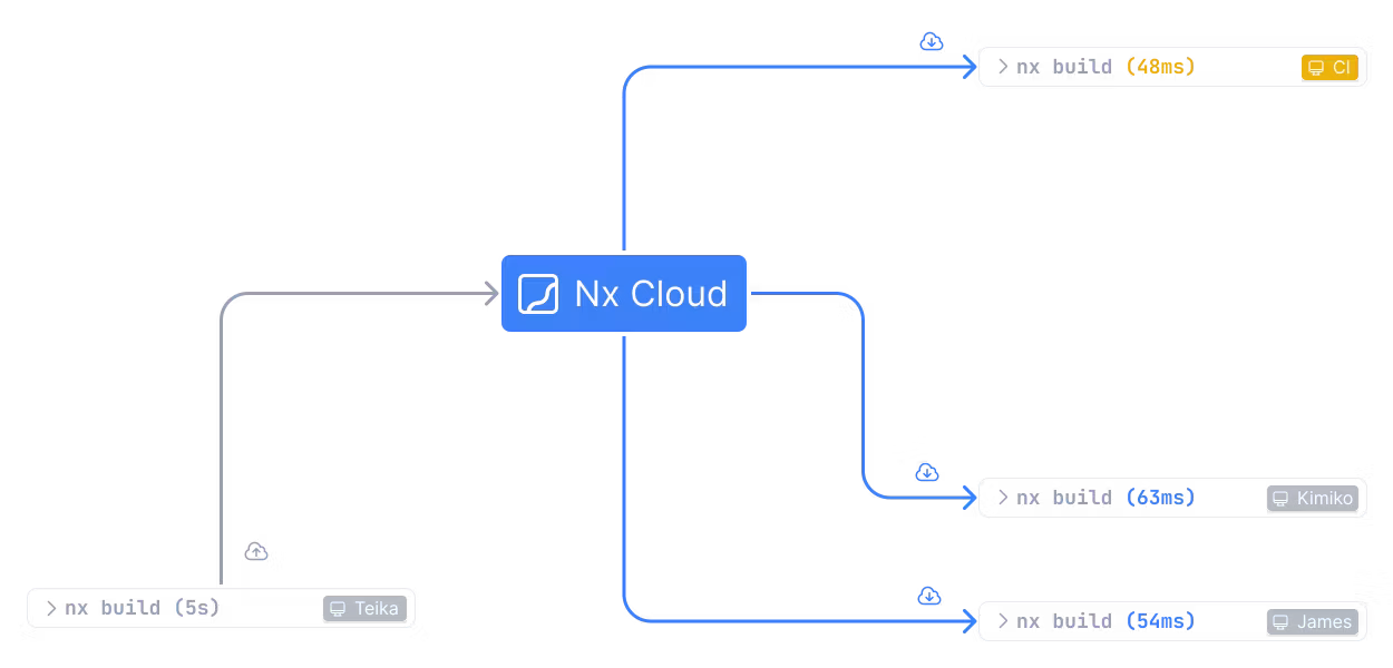 - Remote Caching — share your Nx cache with your coworkers and CI agents. By using Nx Cloud, you can be sure that no computation is done twice — throughout your company.